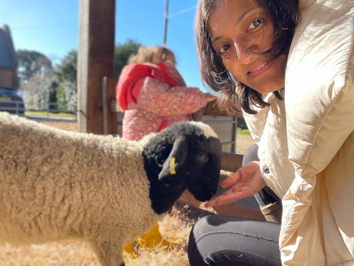 Lambs! (I can’t pretend that I don’t enjoy that Alba calls them ‘lambies’, after her favourite toy.) They love cuddles - Mia promptly kissed one on the nose with a loud ‘mwah!’, so I followed suit and they have the softest noses.